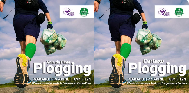 Plogging Challenge chega ás freguesias do Cartaxo e Vale da PintaE se houvesse uma forma em que a prática de exercício físico e o cuidado para com o ambiente caminhassem de mãos dadas? Se pensa que é uma realidade unicamente para o futuro, desengane-se.Chama-se 'Plogging', pode ser praticada por todos e está a poucos dias de chegar, dinamizada pela União de Freguesias, ao Cartaxo e a Vale da Pinta. Esta é uma nova forma de se fazer exercício, quer seja numa caminhada ou corrida, em que ao mesmo tempo que perde calorias é-se amigo do ambiente ao recolher resíduos encontrados no percurso, fazendo, posteriormente, a respetiva reciclagem.O objetivo do Plogging Challenge Portugal é unir o maior número de cidadãos, ao longo da semana de 15 a 23 de abril, em prol do exercício físico e da defesa do ambiente (com a recolha e reciclagem de resíduos), promovendo o sentido de comunidade.É precisamente nesse sentido que a UF Cartaxo e Vale da Pinta convida toda a população a juntar-se para uma causa em comum nos dias 15 de abril, em Vale da Pinta, e 22 de abril, no Cartaxo. Os eventos decorrem em dias separados, mas no mesmo horário, entre as 9 horas e o meio-dia.15 de abril - Vale da Pinta - Ponto de encontro na Junta de Freguesia de Vale da Pinta22 de abril - Cartaxo - Ponto de encontro na Junta de Freguesia do CartaxoContamos com a ajuda de toda a população. Por isso, todos os interessados devem formalizar a sua inscrição através do link anunciado abaixoInscrições Plogging